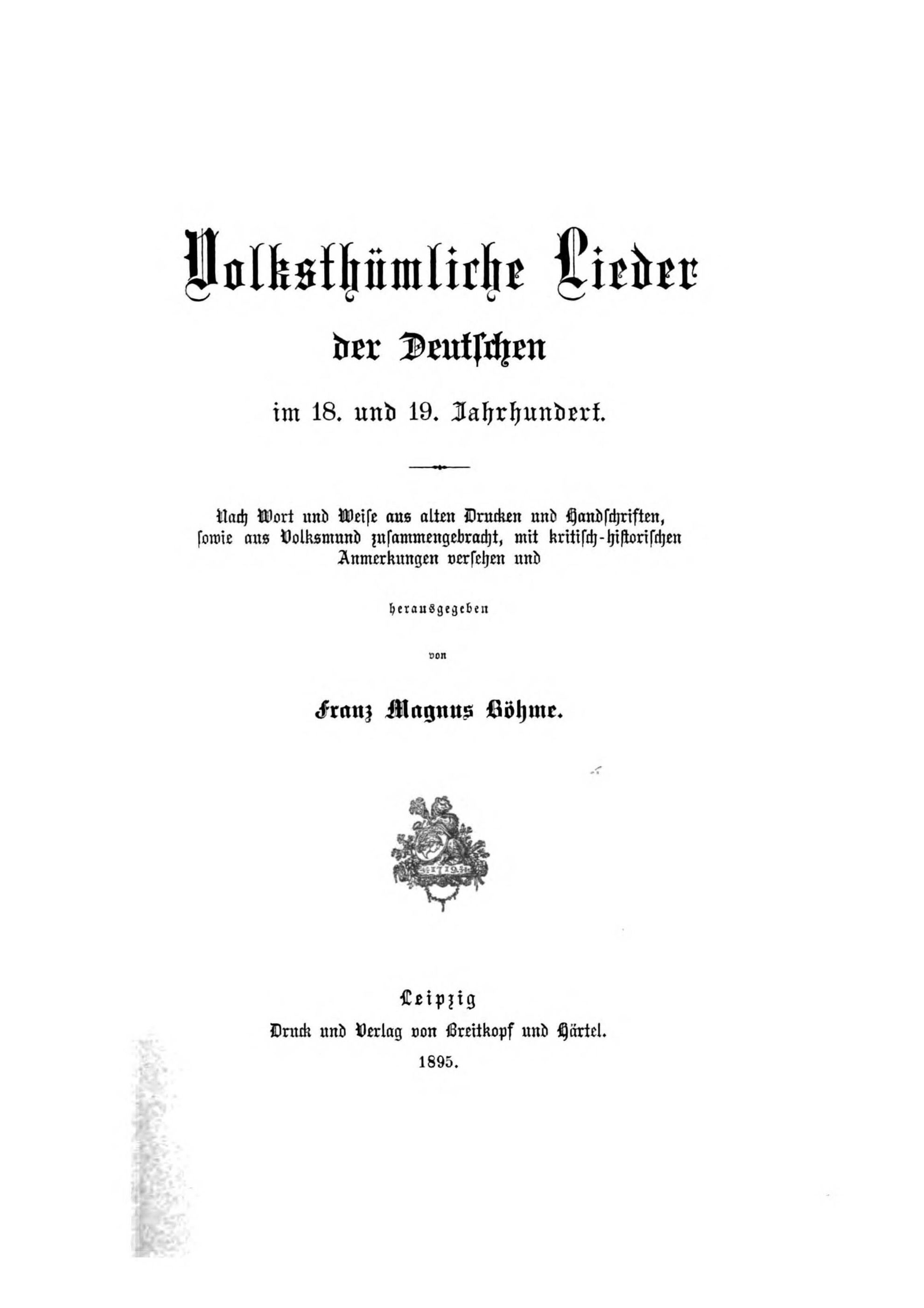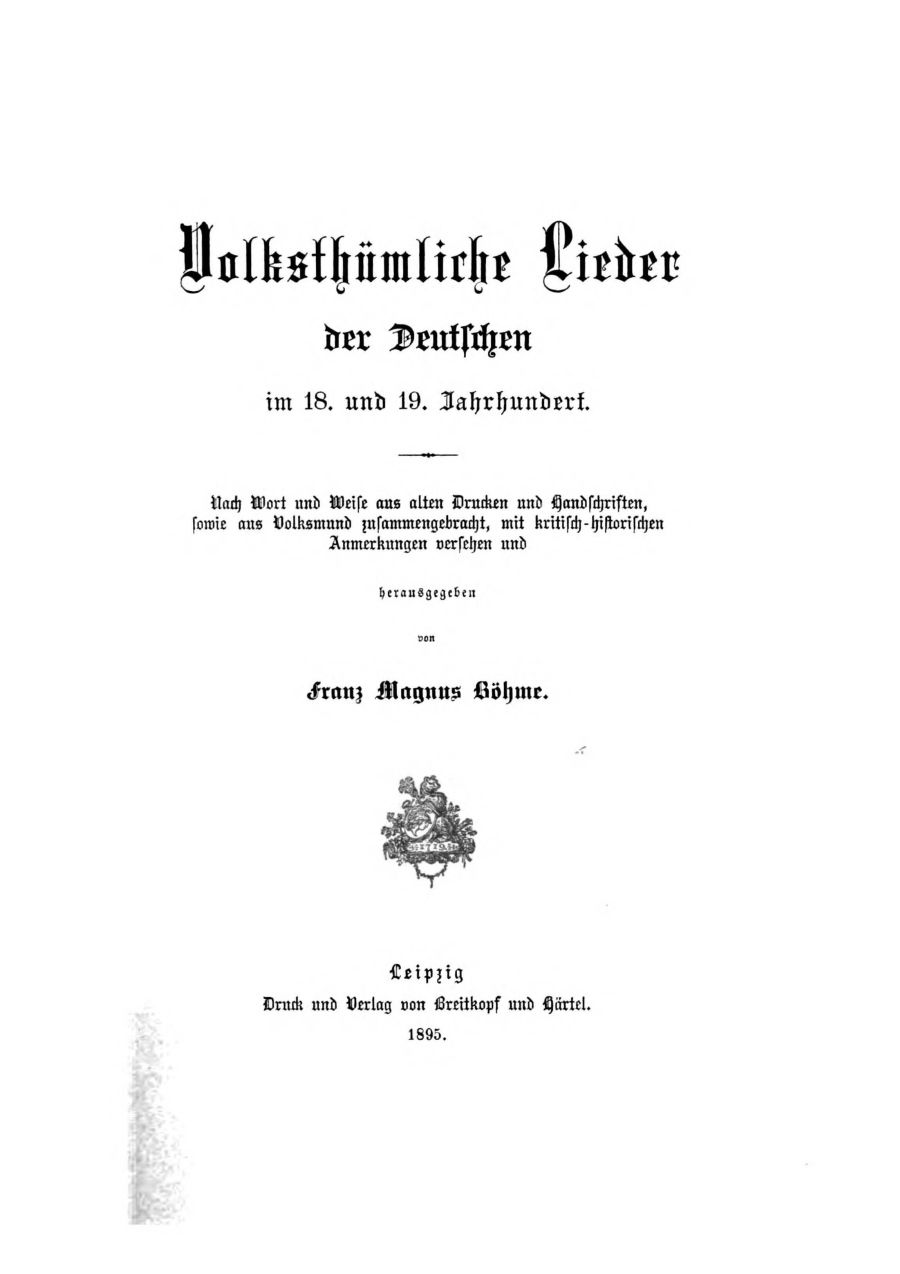 Nach Wort und Weise aus alten Drucken und Handschriften, sowie aus dem Volksmund zusammengebracht, mit kritisch-historischen Anmerkungen versehen und herausgegeben von Franz Magnus Böhme.Quelle: archive.org