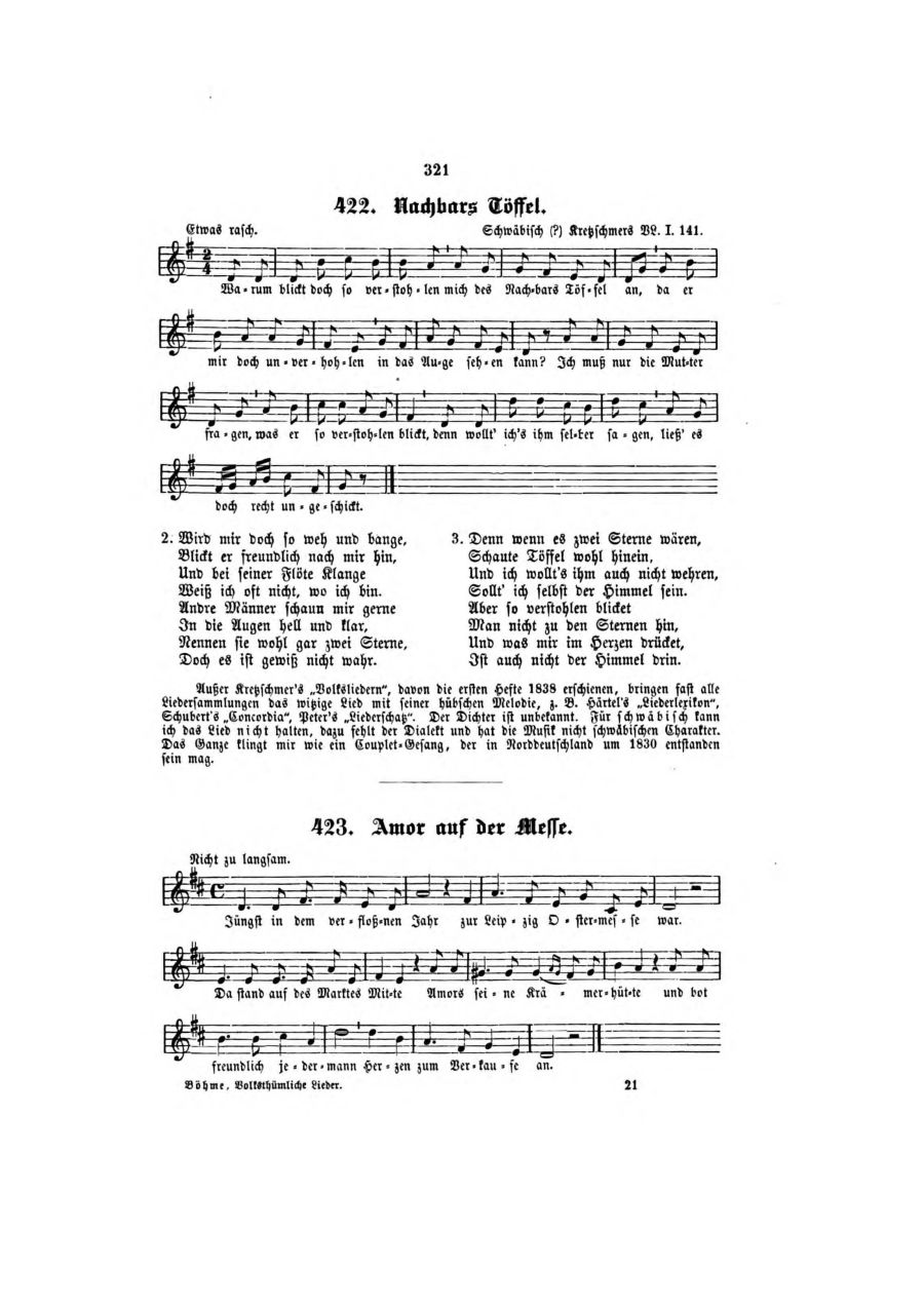 Nach Wort und Weise aus alten Drucken und Handschriften, sowie aus dem Volksmund zusammengebracht, mit kritisch-historischen Anmerkungen versehen und herausgegeben von Franz Magnus Böhme.Quelle: archive.org