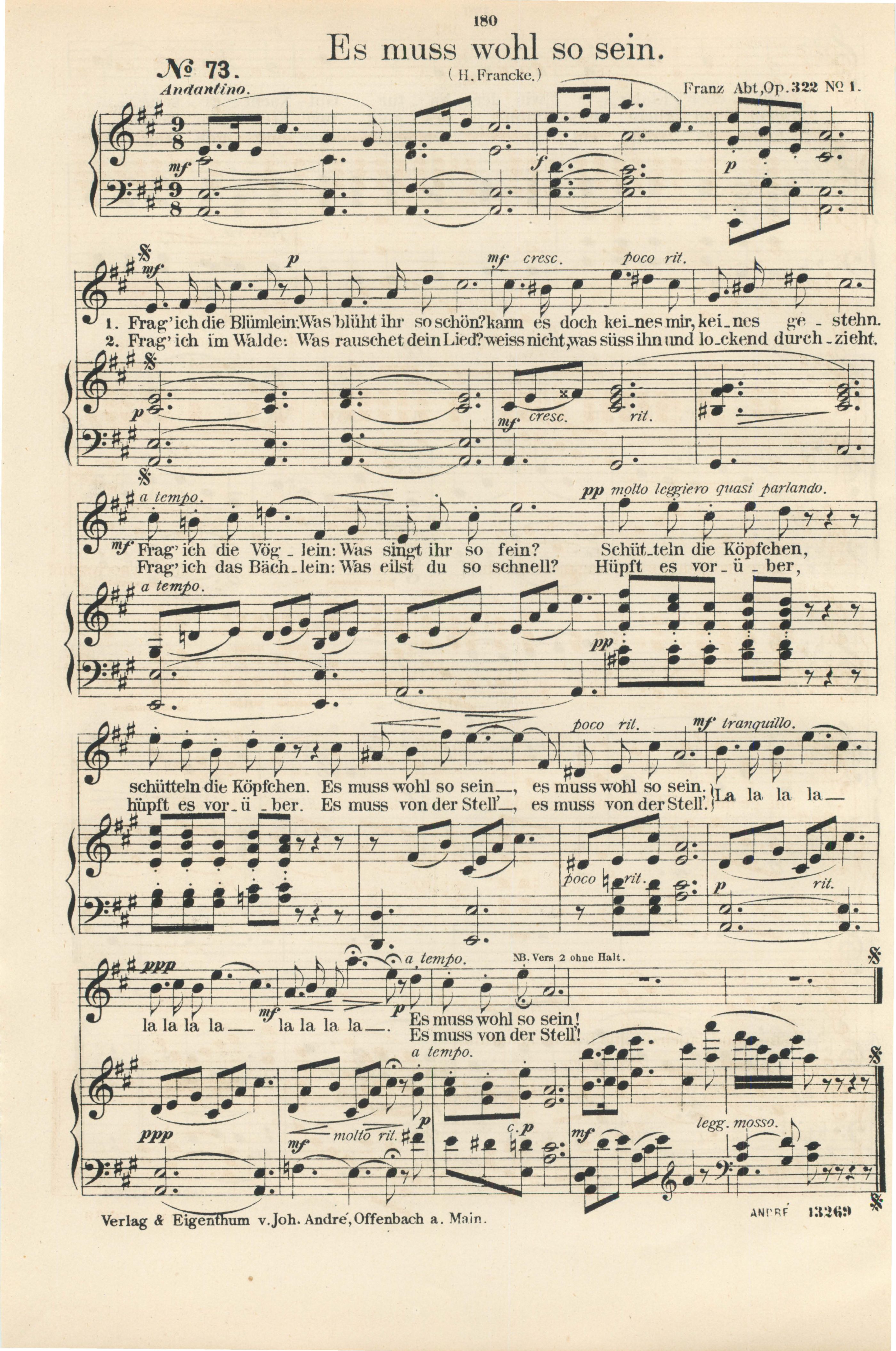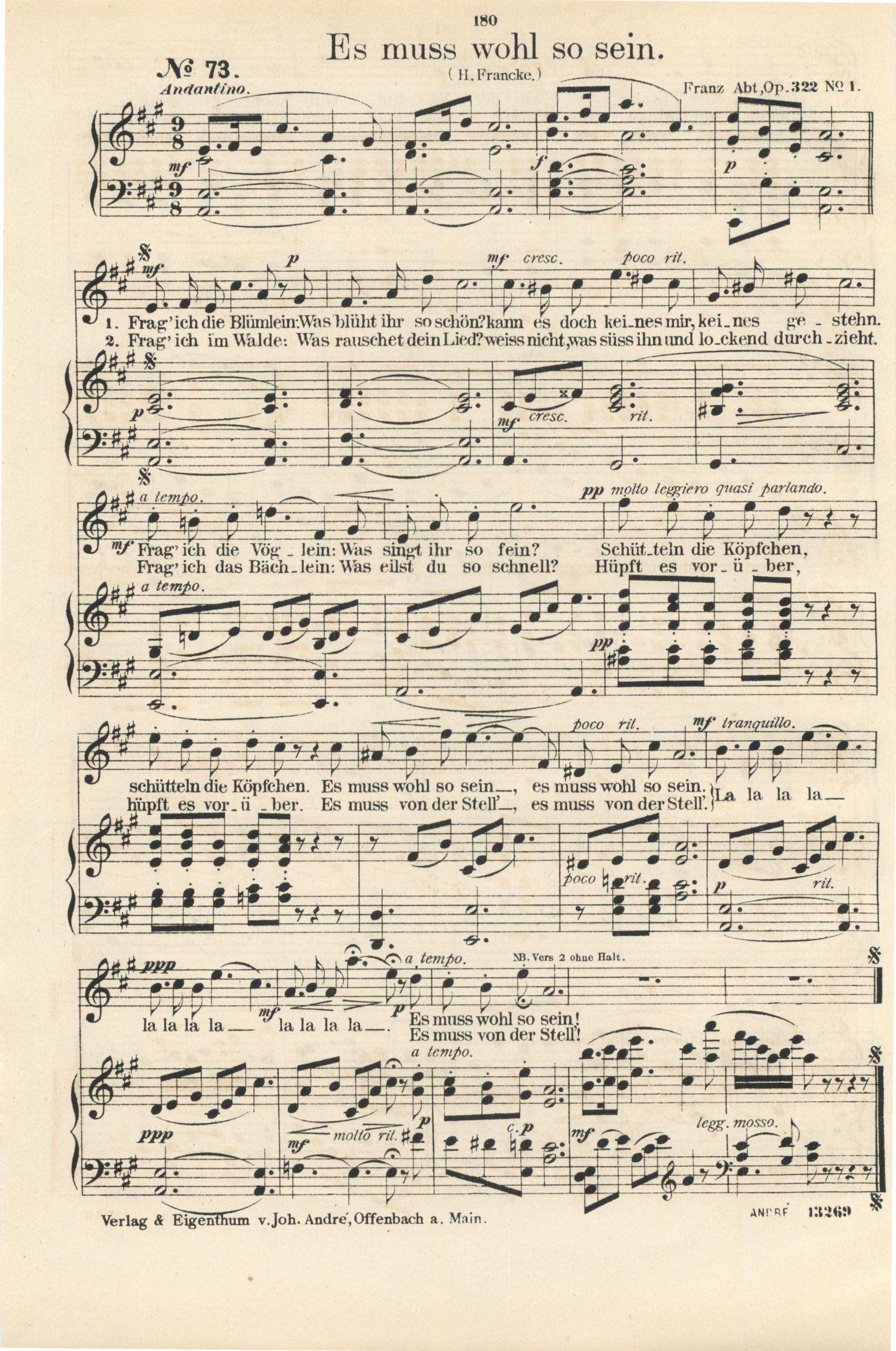 für Sopran oder Tenor mit Pianofortebegleitung komponiert von Franz Abt