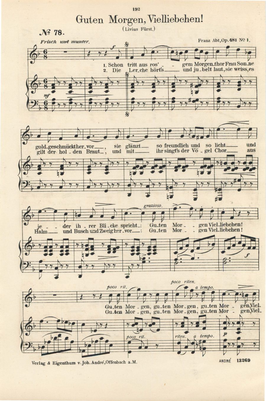 für Sopran oder Tenor mit Pianofortebegleitung komponiert von Franz Abt