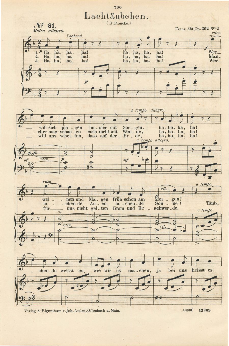 für Sopran oder Tenor mit Pianofortebegleitung komponiert von Franz Abt