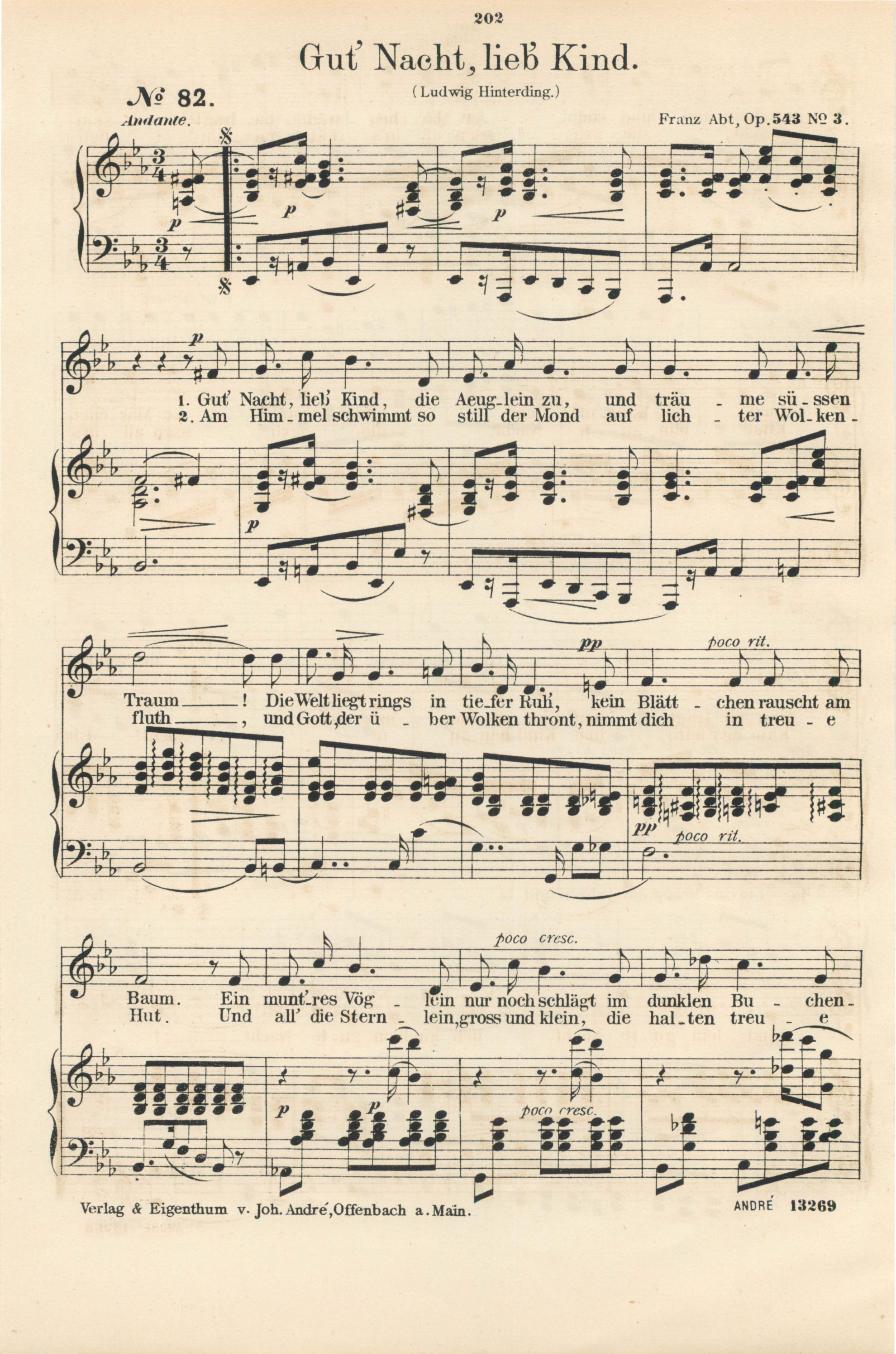 für Sopran oder Tenor mit Pianofortebegleitung komponiert von Franz Abt