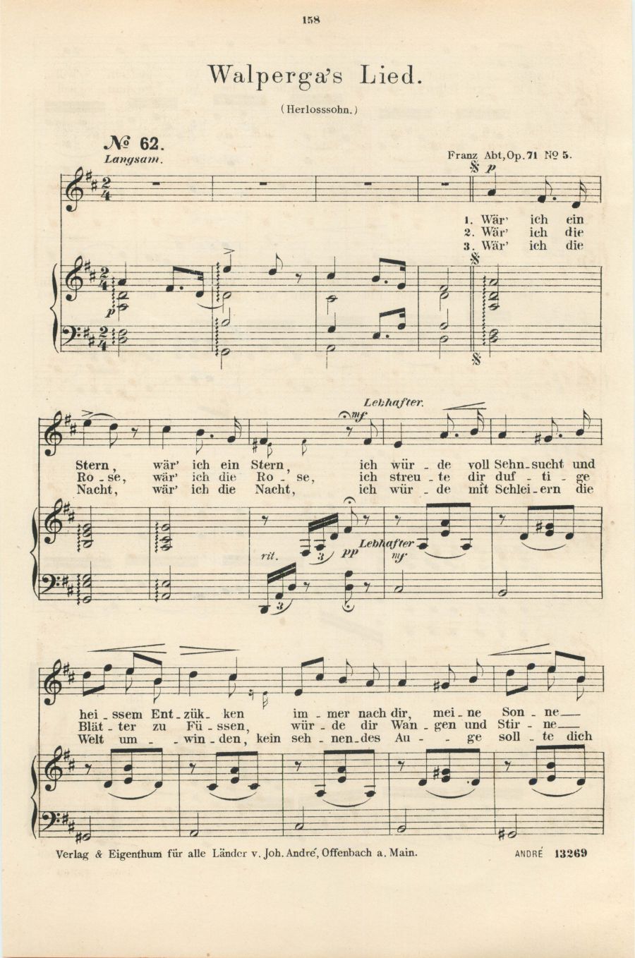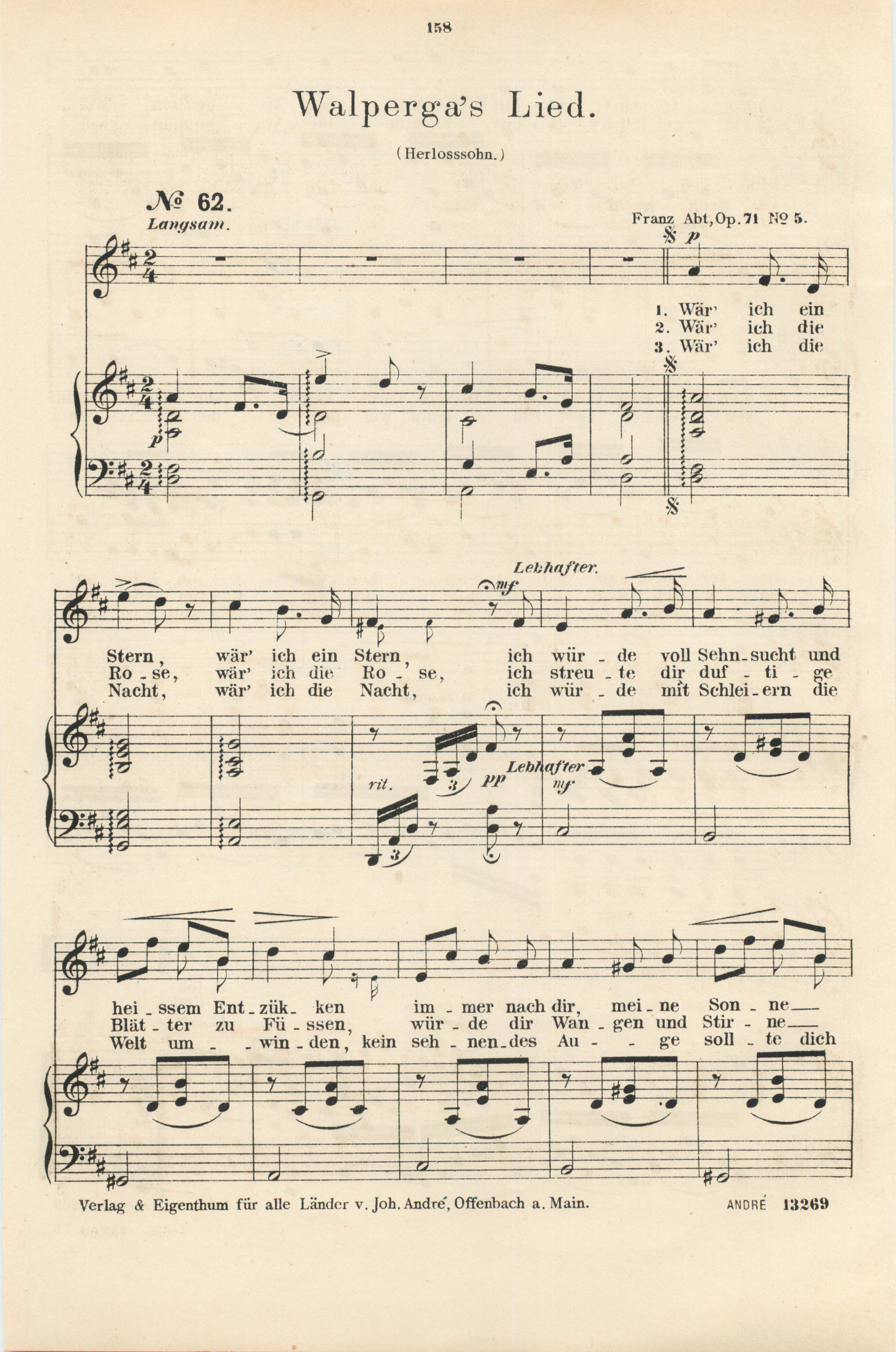 für Sopran oder Tenor mit Pianofortebegleitung komponiert von Franz Abt
