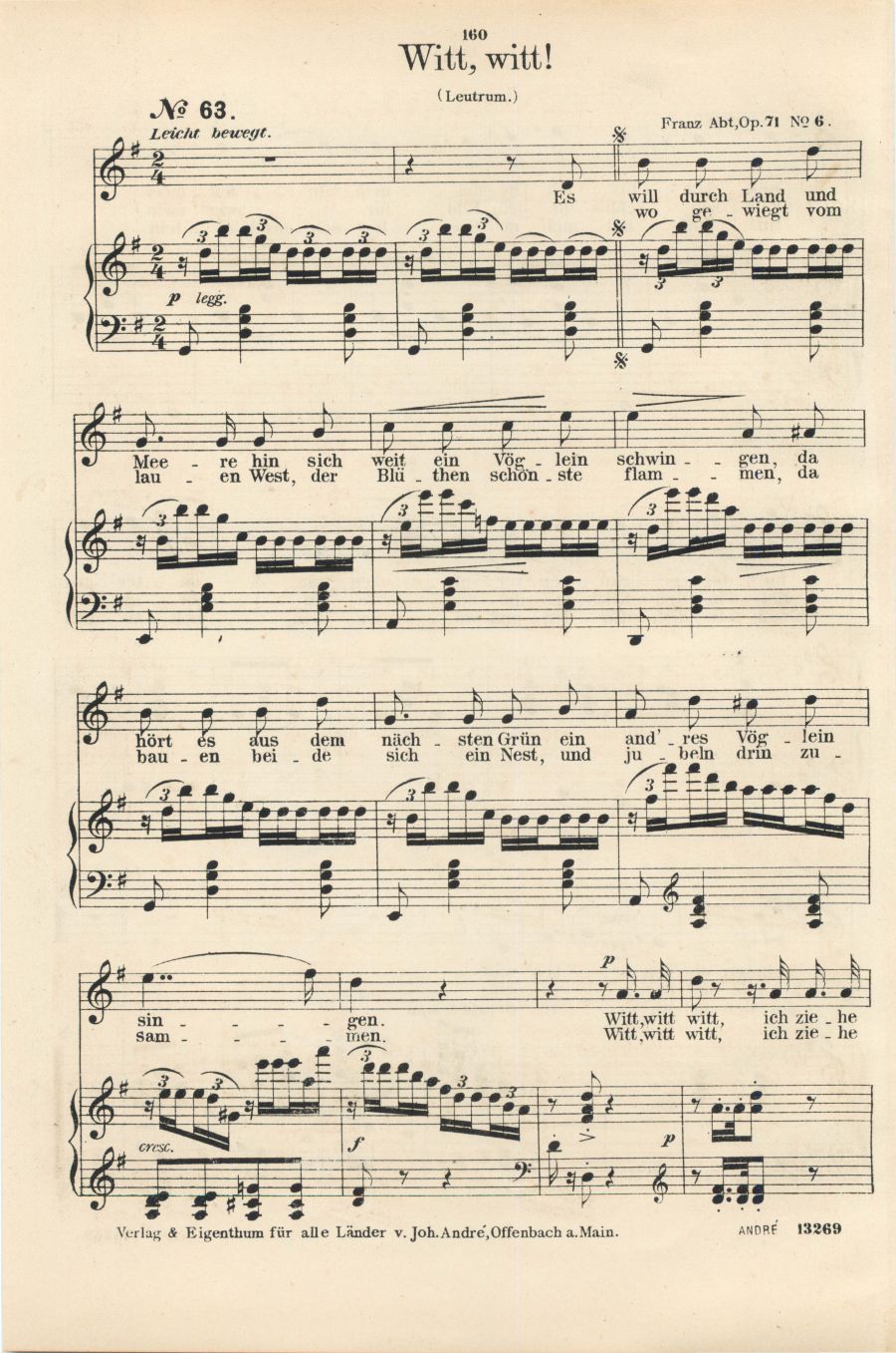 für Sopran oder Tenor mit Pianofortebegleitung komponiert von Franz Abt