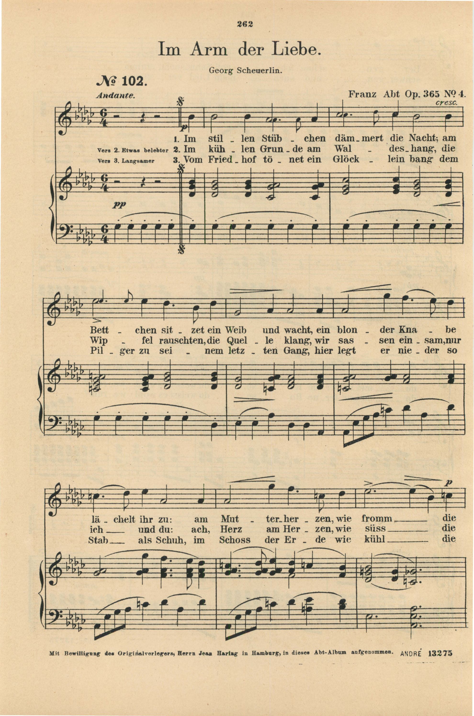 für Sopran oder Tenor mit Pianofortebegleitung komponiert von Franz Abt