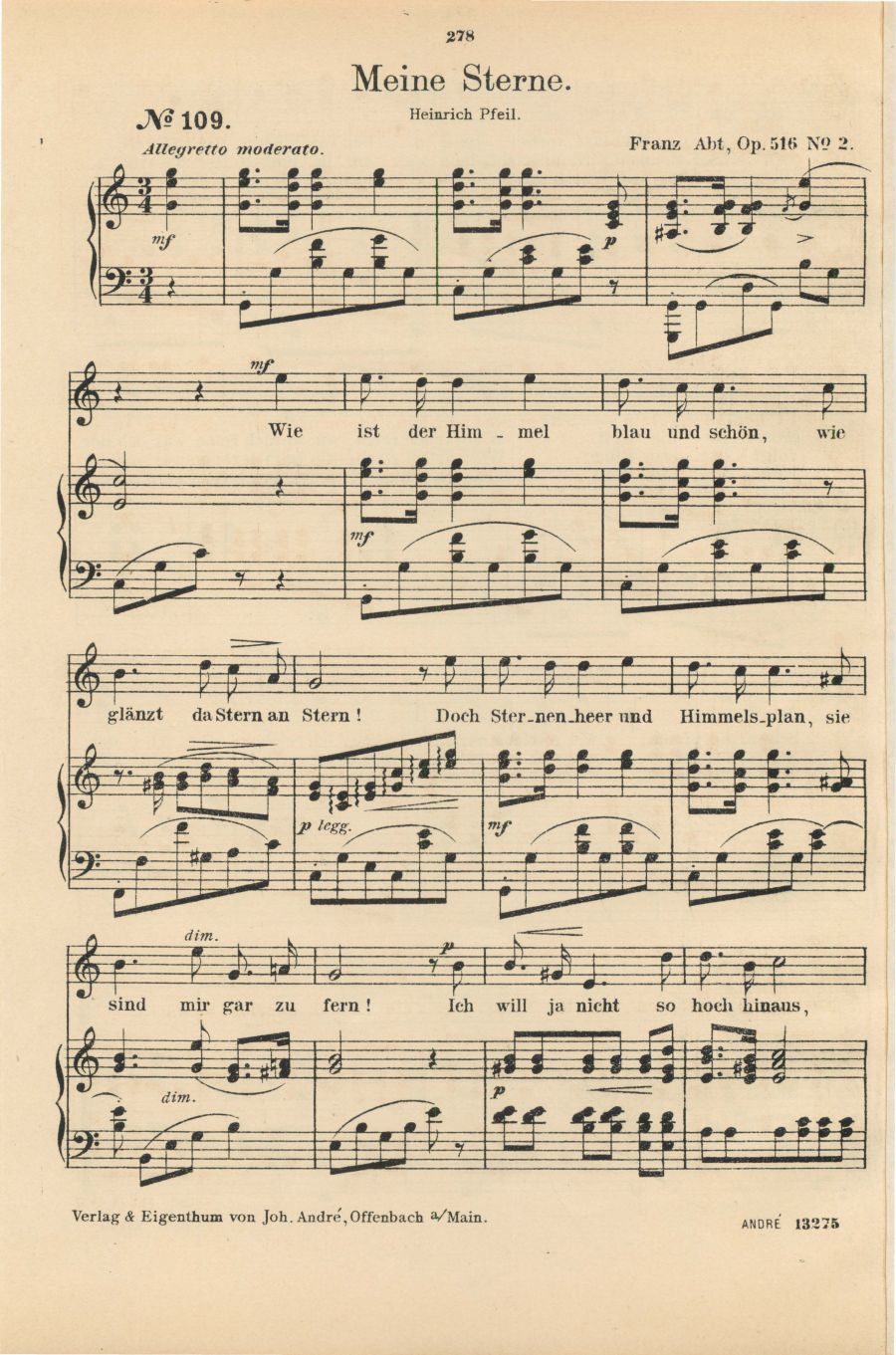 für Sopran oder Tenor mit Pianofortebegleitung komponiert von Franz Abt