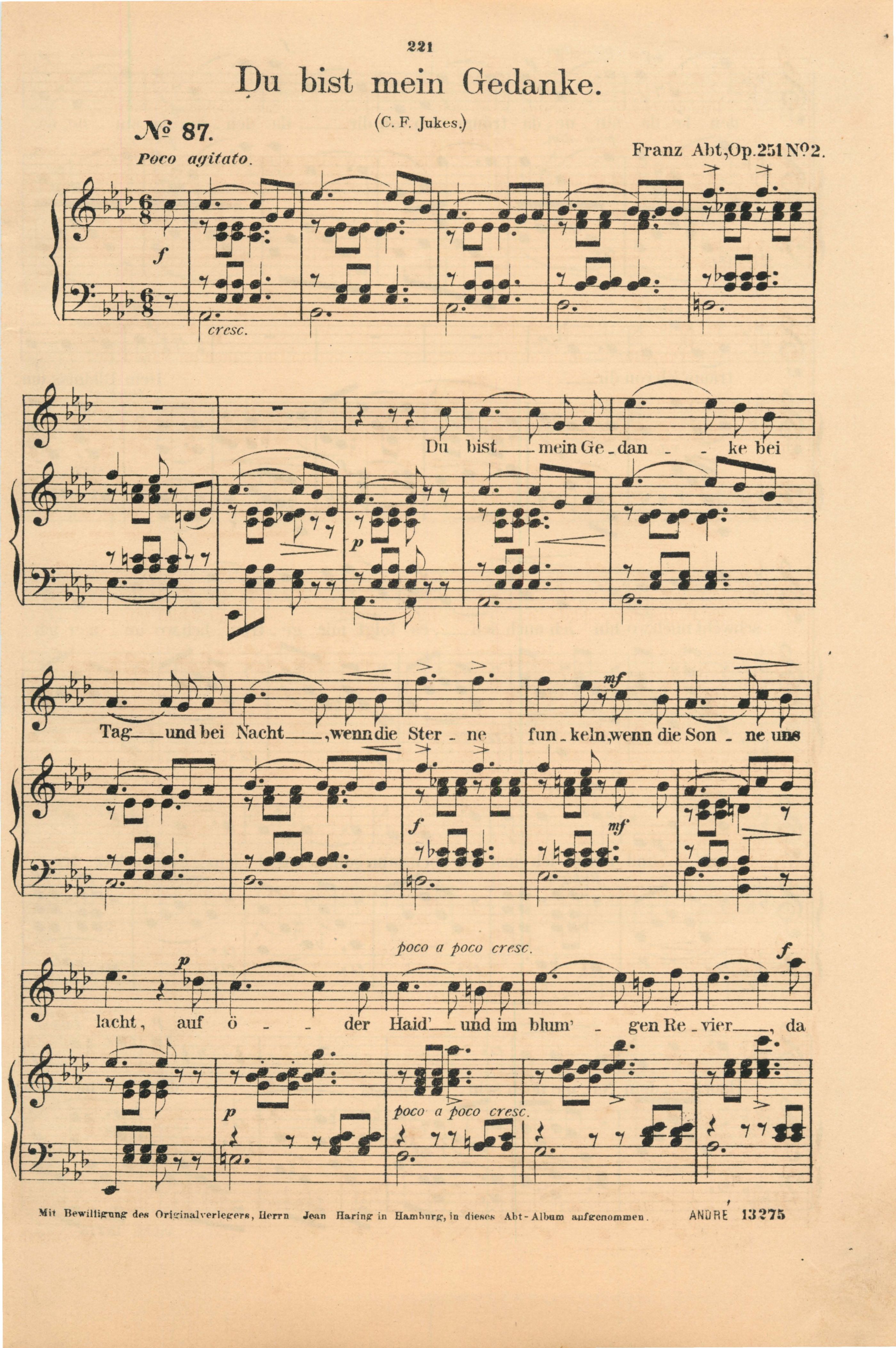 für Sopran oder Tenor mit Pianofortebegleitung komponiert von Franz Abt