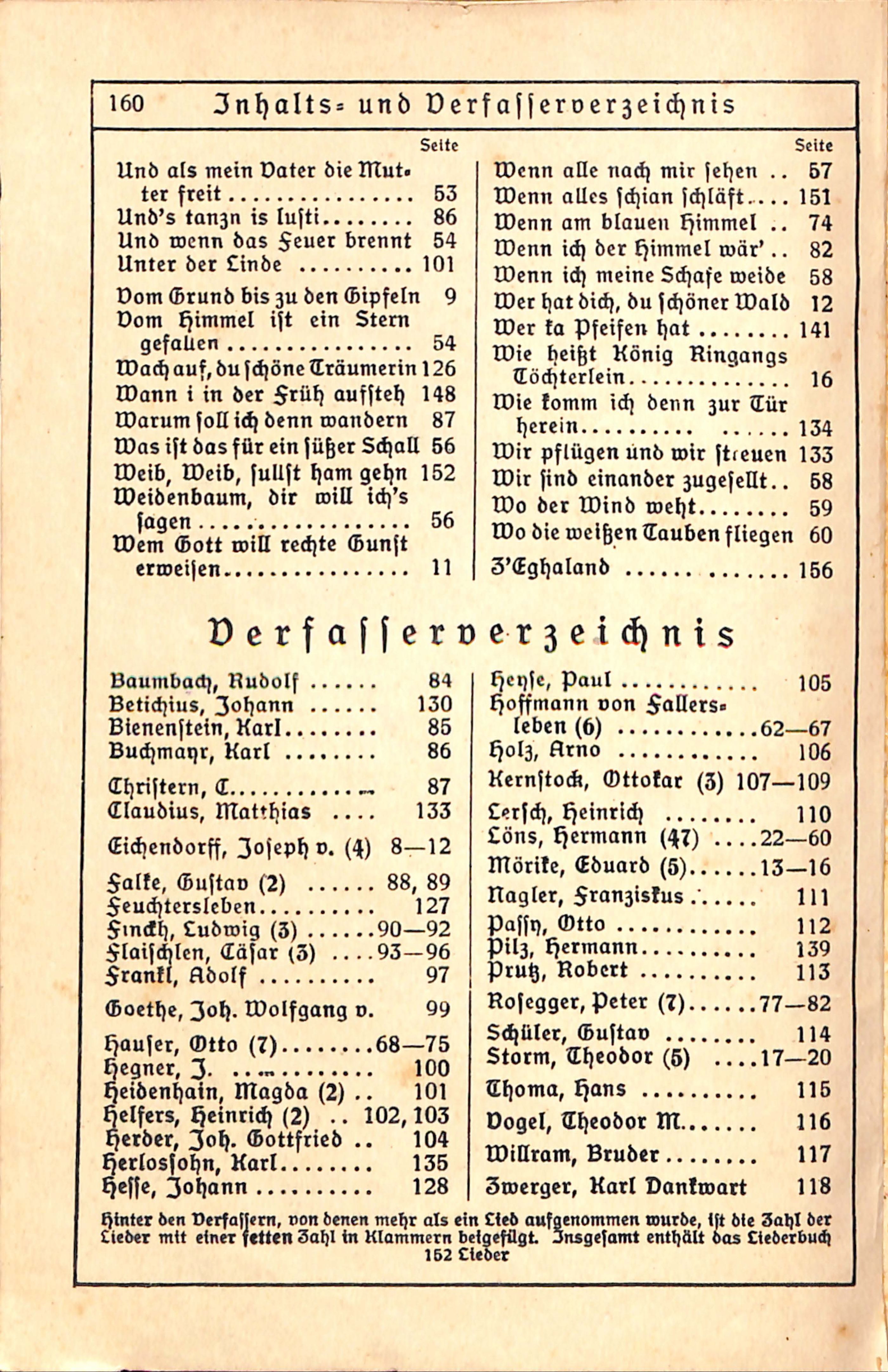 Inhaltsverzeichnis nach Liedanfängen