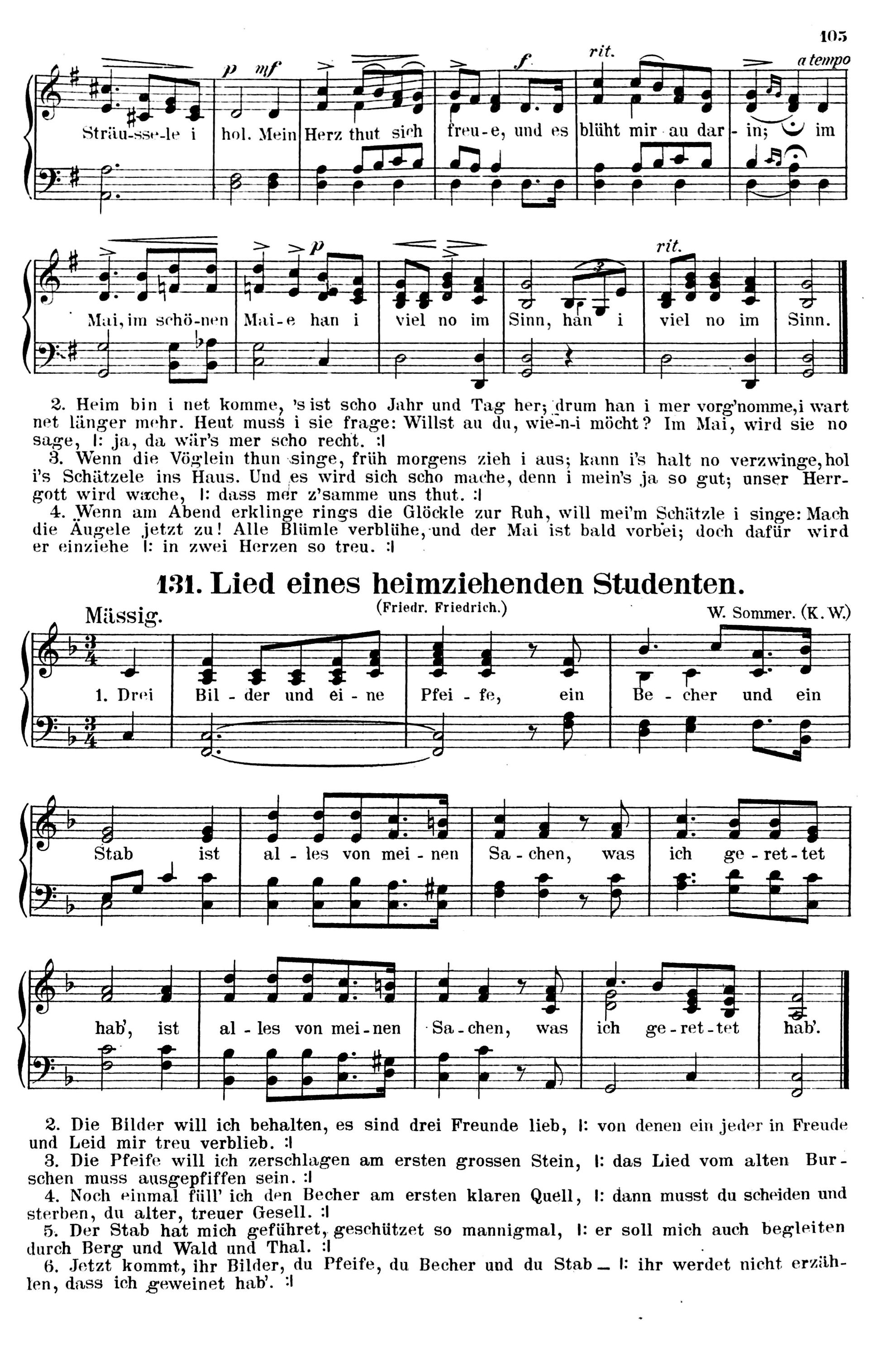 731 Vaterlands-, Studenten- und Volkslieder sowie ein- und zweistimmige Solo-Gesänge mit Klavierbegleitung