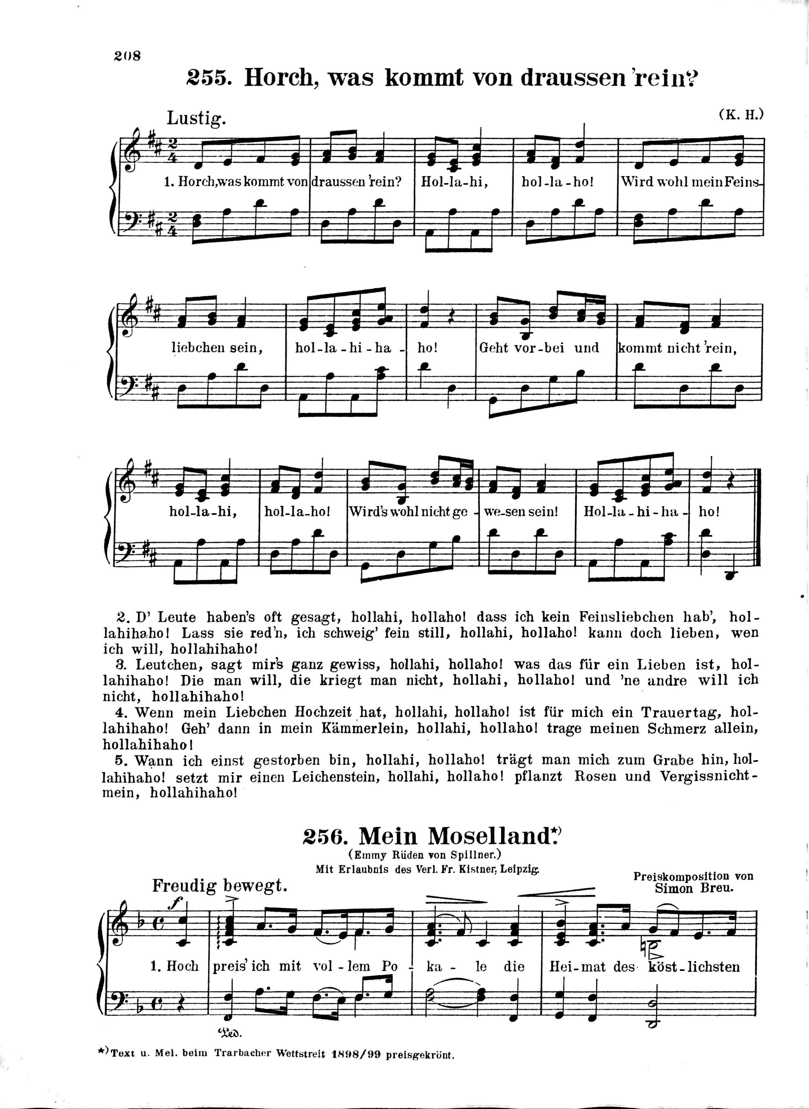 731 Vaterlands-, Studenten- und Volkslieder sowie ein- und zweistimmige Solo-Gesänge mit Klavierbegleitung