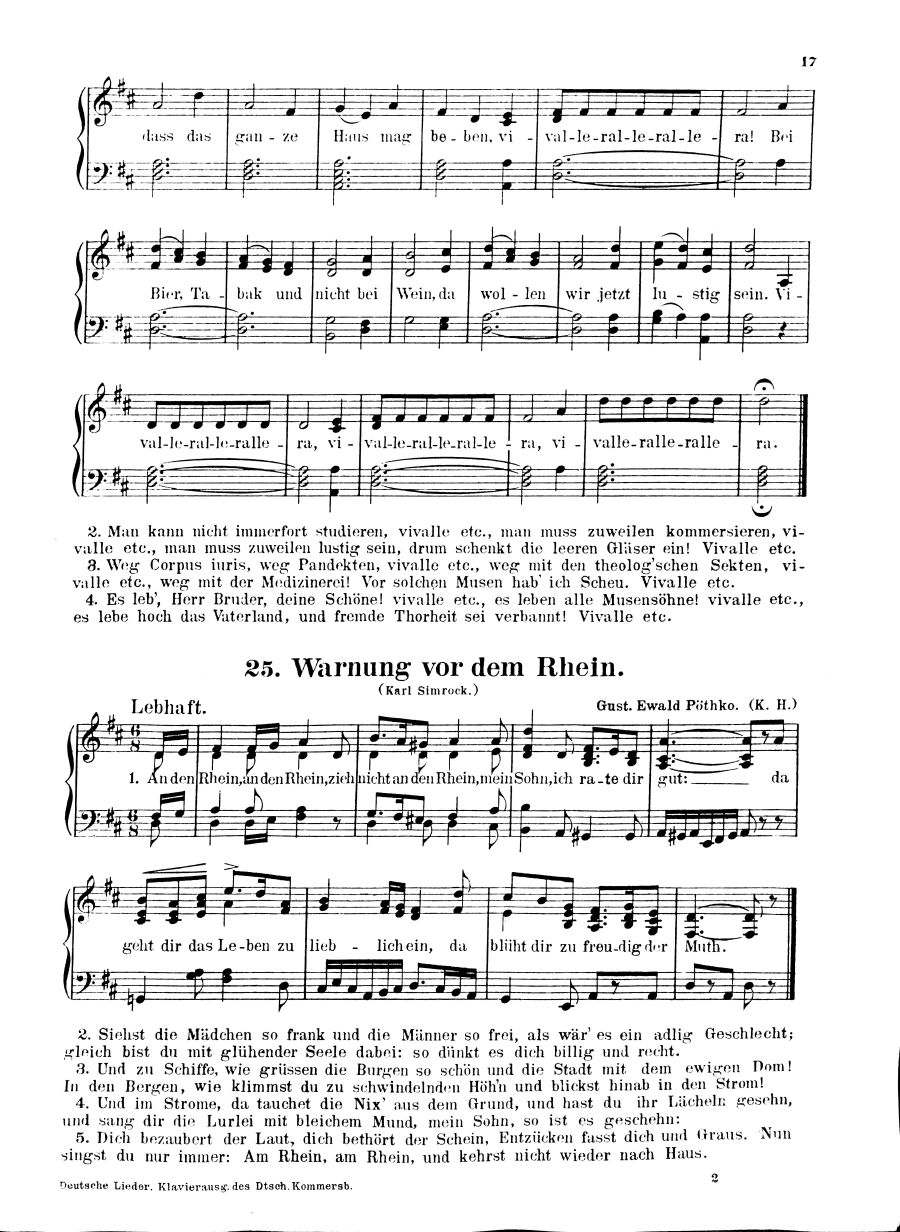 731 Vaterlands-, Studenten- und Volkslieder sowie ein- und zweistimmige Solo-Gesänge mit Klavierbegleitung