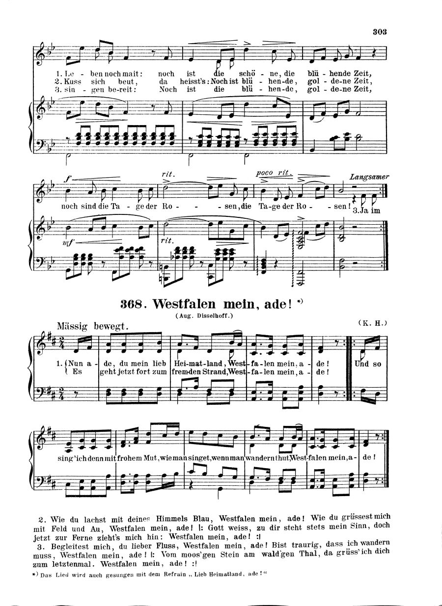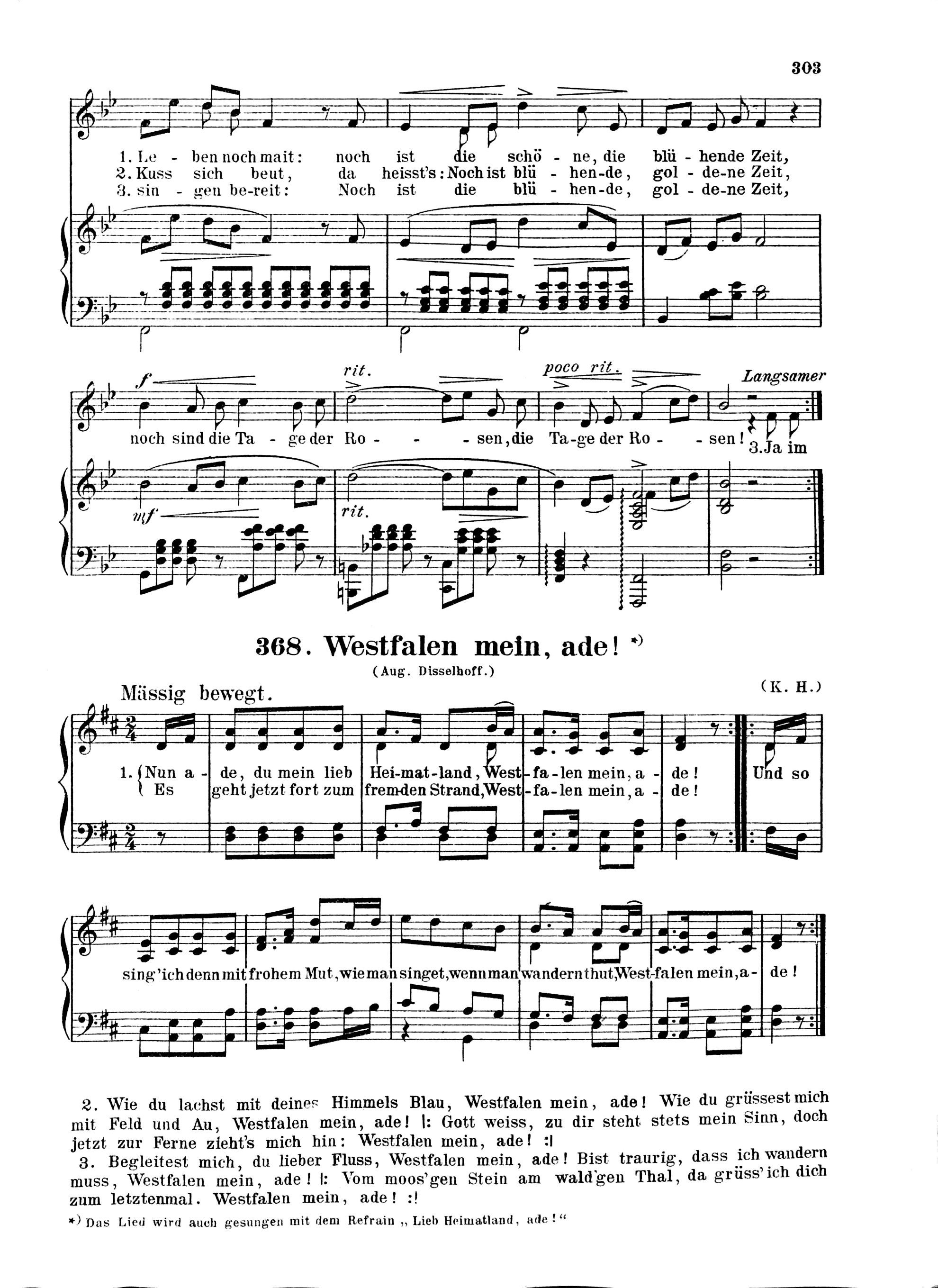 731 Vaterlands-, Studenten- und Volkslieder sowie ein- und zweistimmige Solo-Gesänge mit Klavierbegleitung