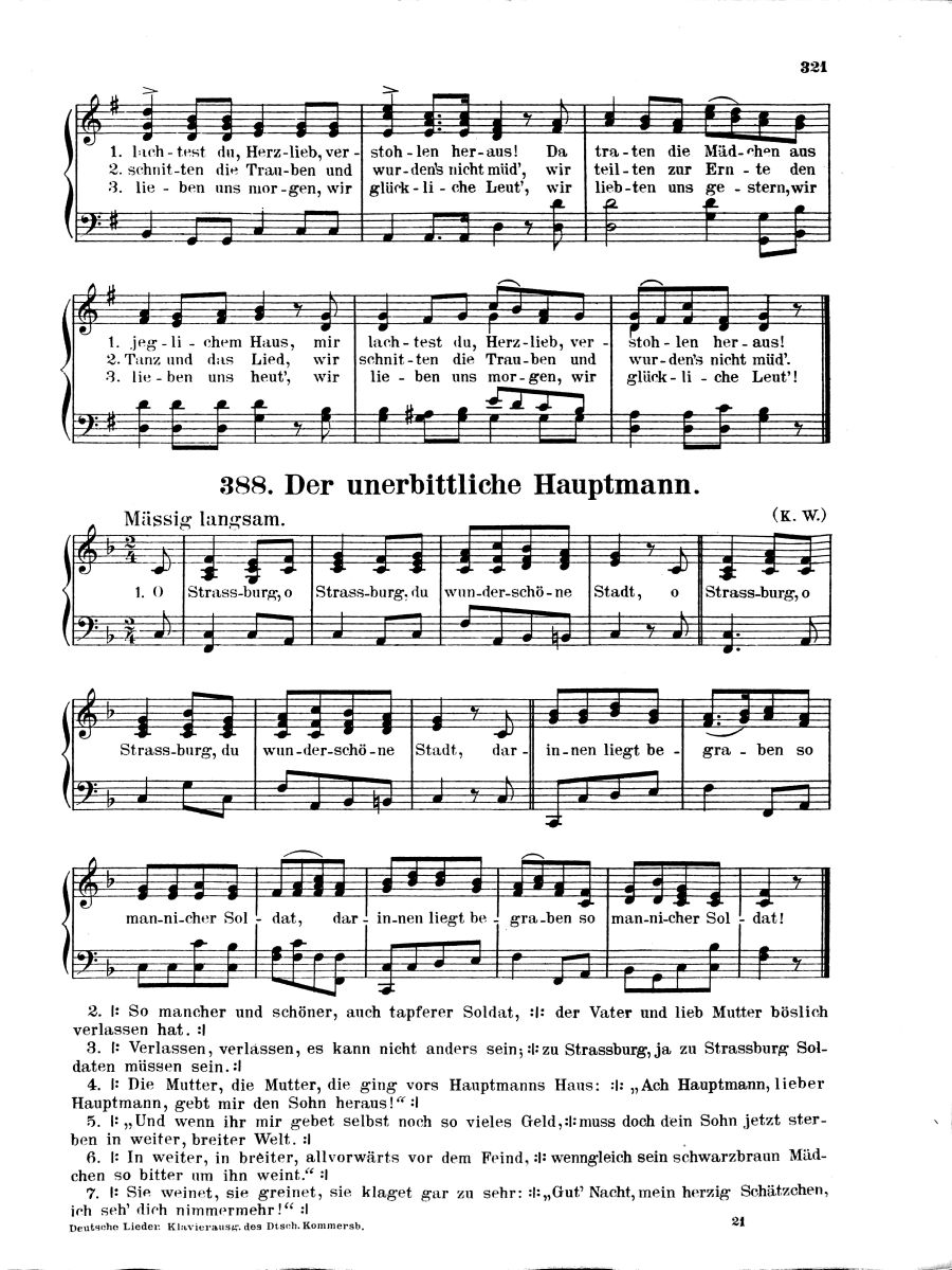 731 Vaterlands-, Studenten- und Volkslieder sowie ein- und zweistimmige Solo-Gesänge mit Klavierbegleitung