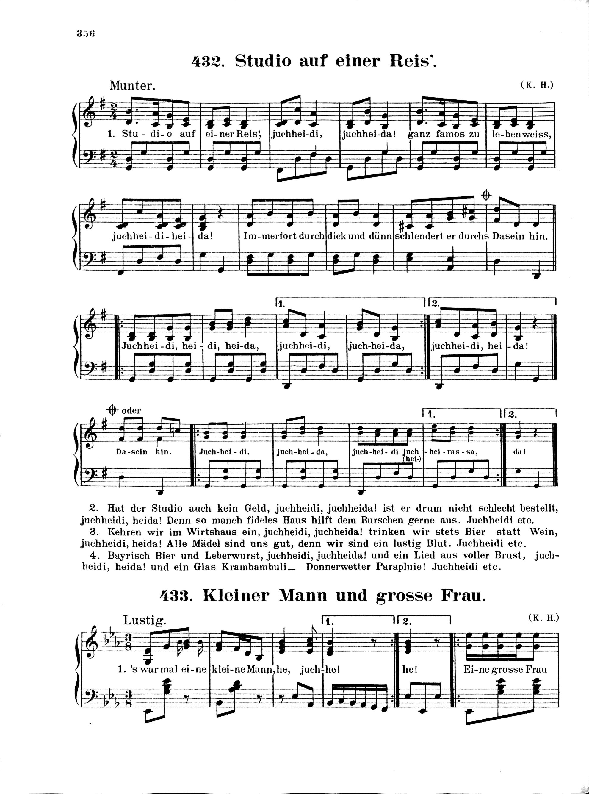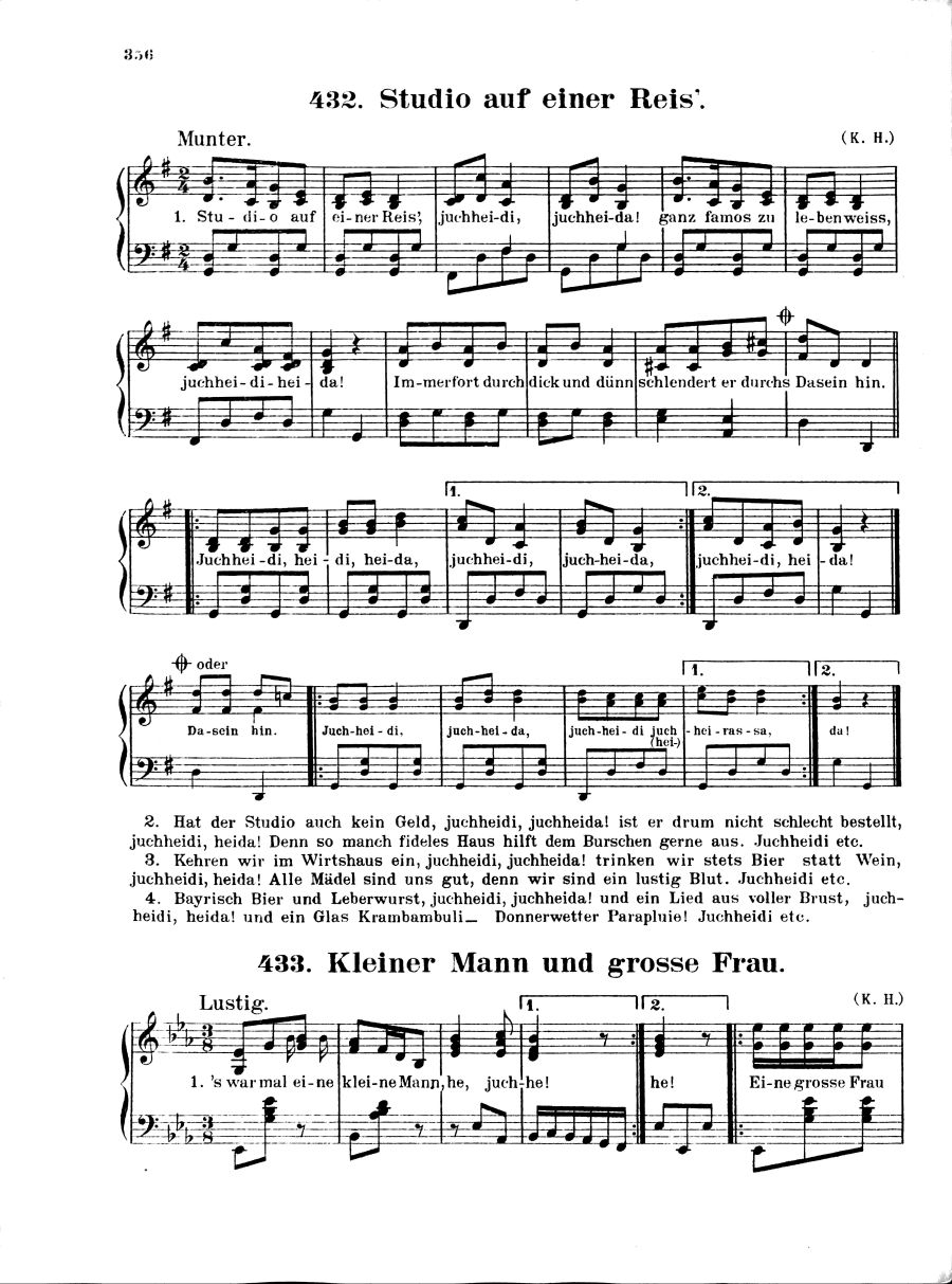 731 Vaterlands-, Studenten- und Volkslieder sowie ein- und zweistimmige Solo-Gesänge mit Klavierbegleitung