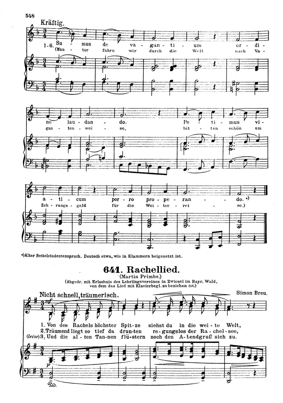 731 Vaterlands-, Studenten- und Volkslieder sowie ein- und zweistimmige Solo-Gesänge mit Klavierbegleitung