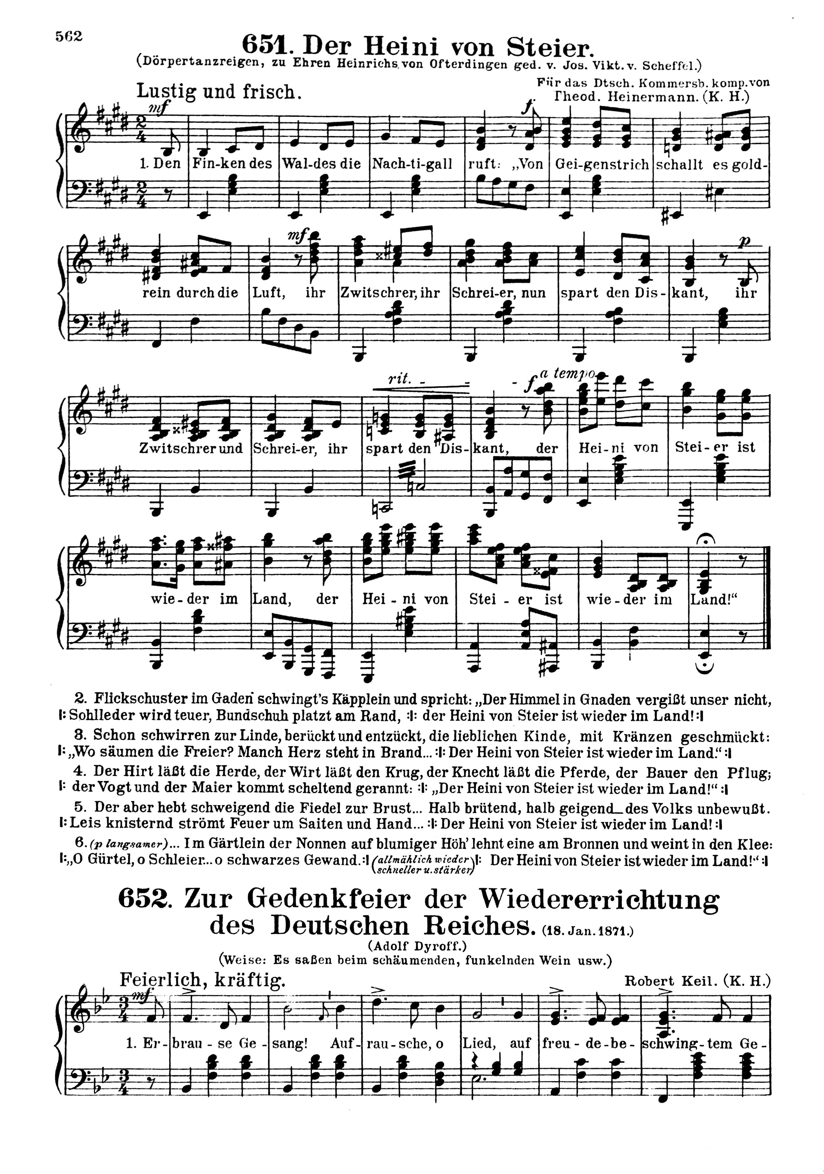 731 Vaterlands-, Studenten- und Volkslieder sowie ein- und zweistimmige Solo-Gesänge mit Klavierbegleitung