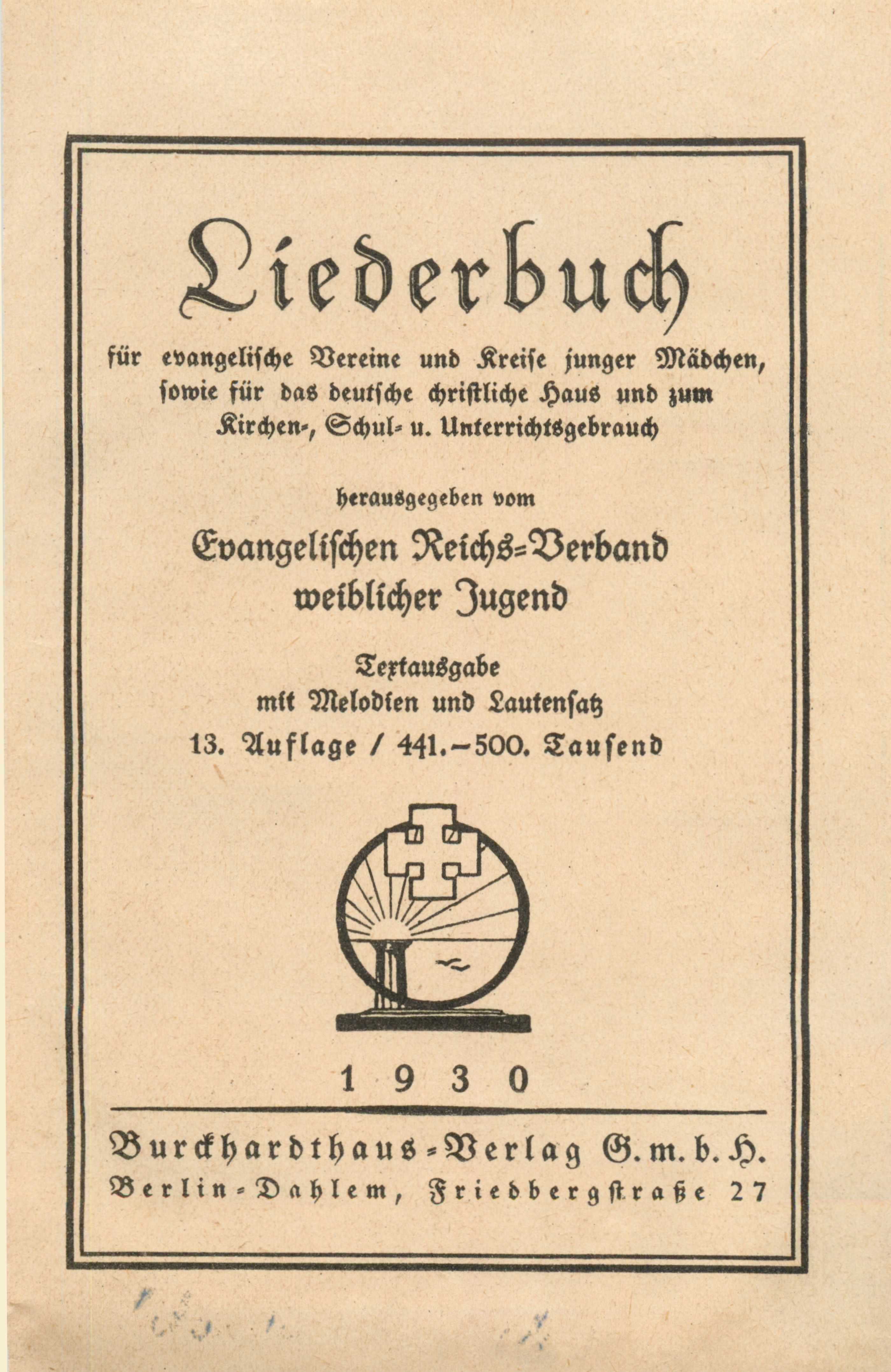 Burckhardthaus-Verlag, Berlin-Dahlem, 13. Auflage, 1930