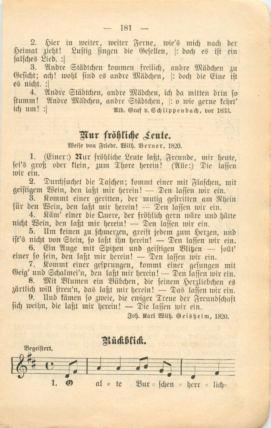 325 der beliebtesten Vaterlands-, Volks- und Studenten-Lieder, nebst einigen Sologesängen, zumeist mit Melodie
