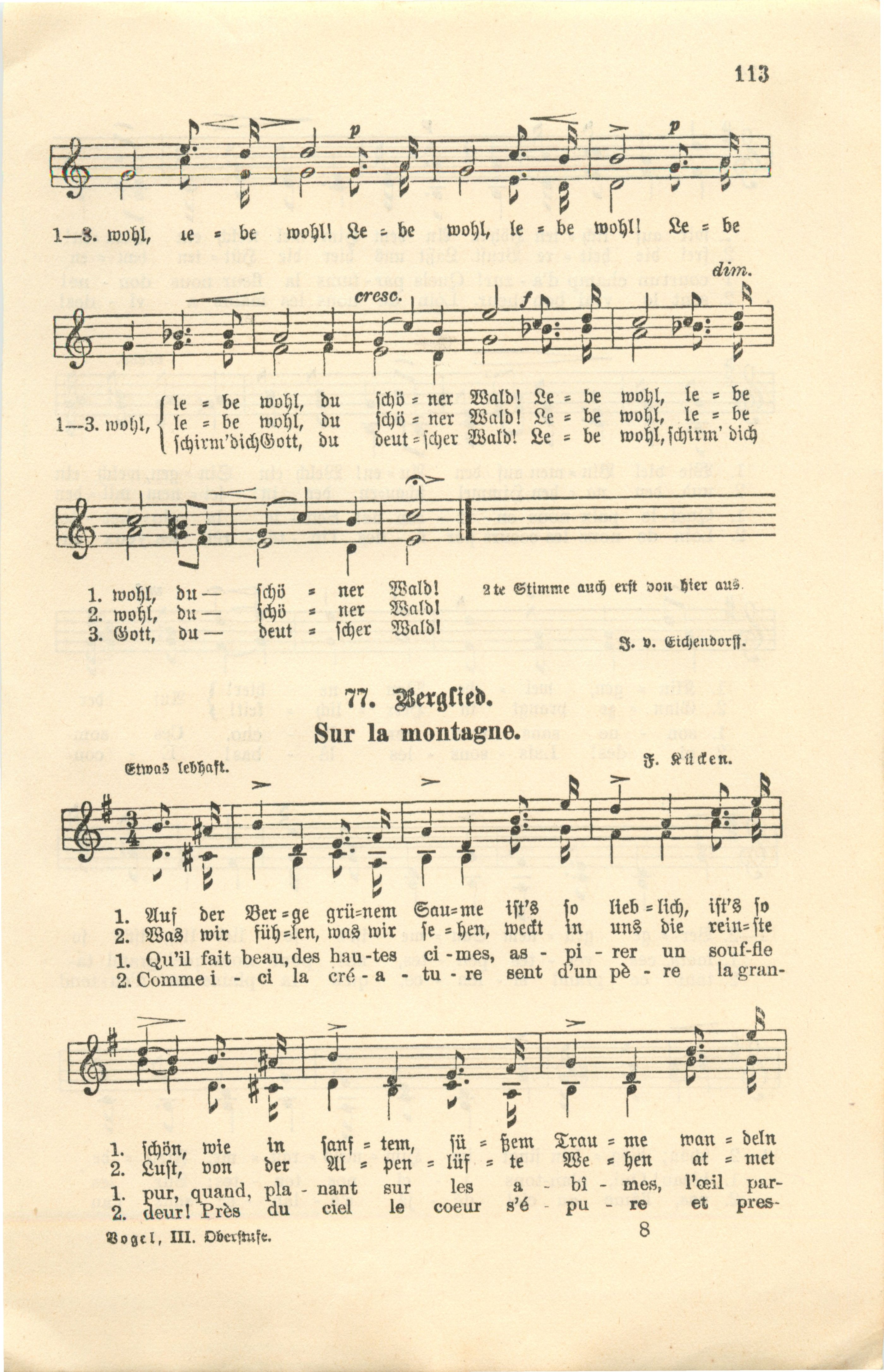 Sammlung ein-, zwei-, drei- und virstimmiger Lieder und Gesänge geistlichen und weltlichen Inhalts