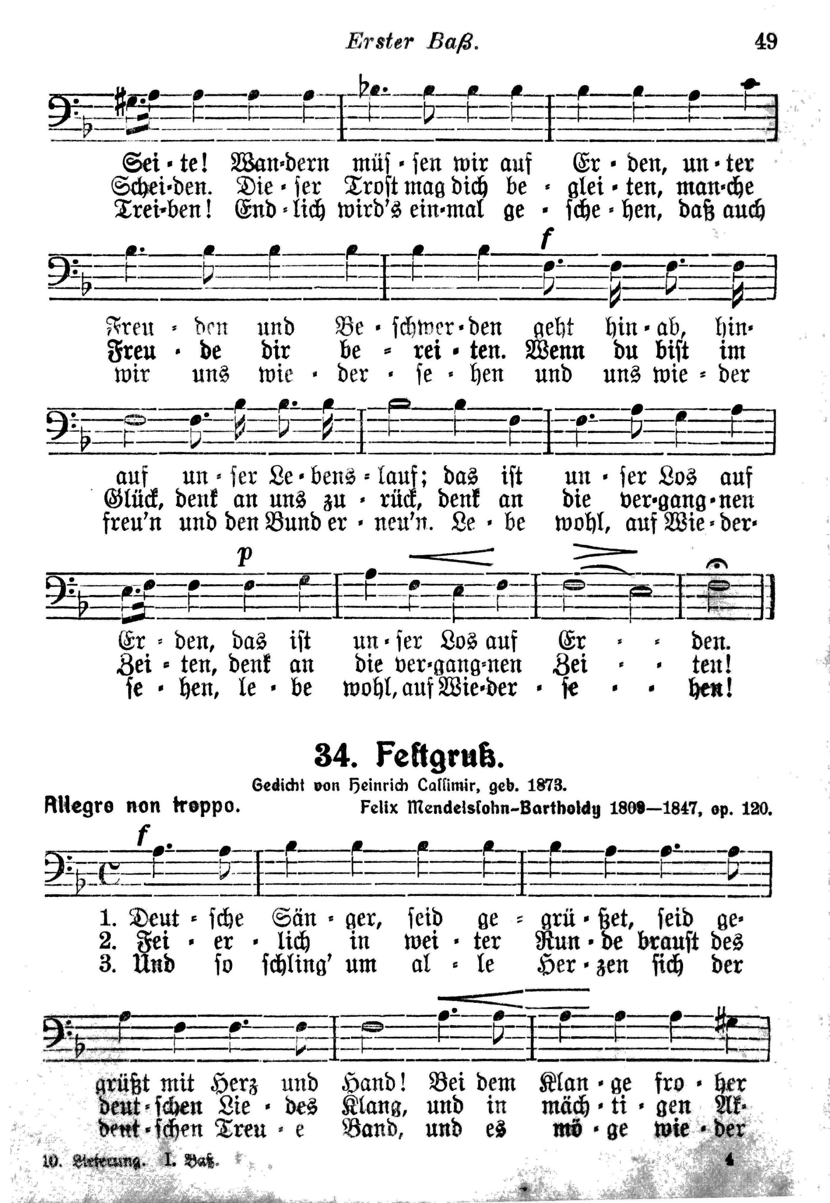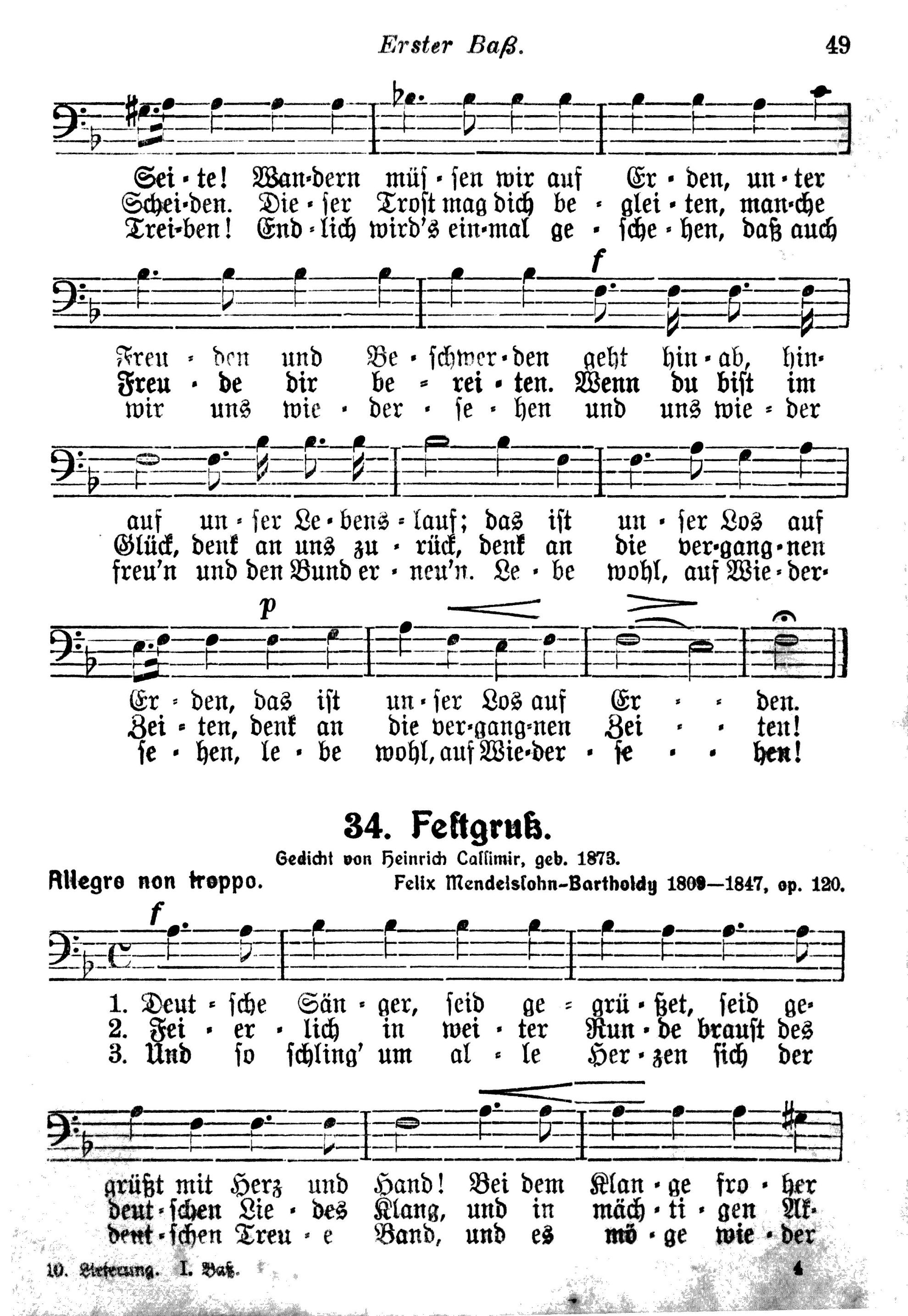 Liedersammlung des badischen Sängerbundes 1. Bass