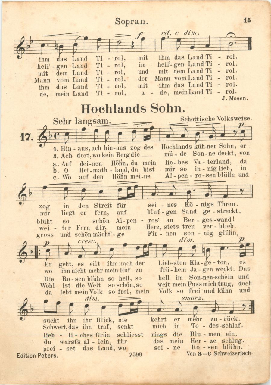 Hundert beliebte Volks- und andere Lieder für Sopran, Alt, Tenor und Bass herausgegeben von Moritz Vogel