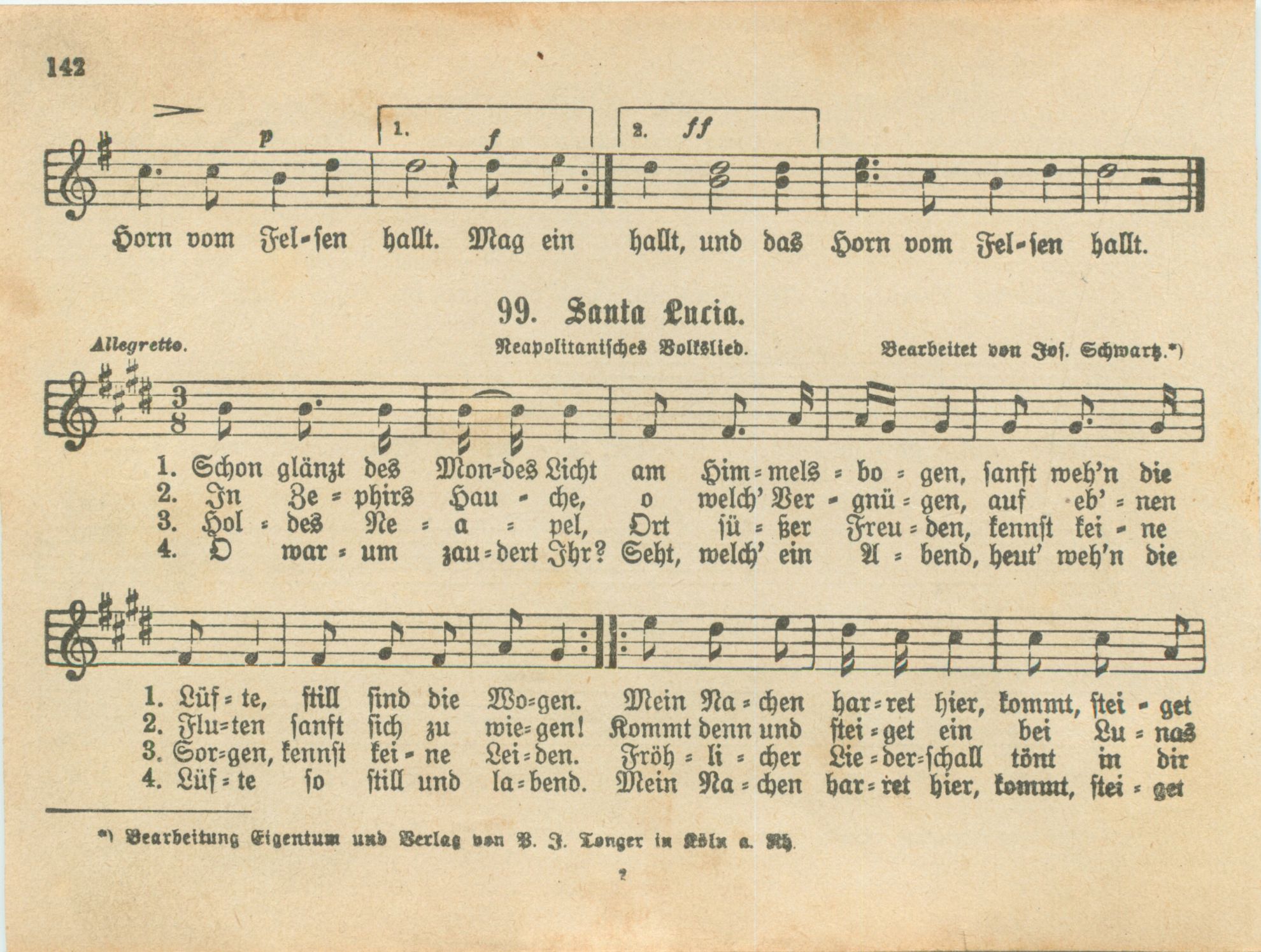 144 der beliebtesten Männerchöre, durchgesehen, teilweise neu bearbeitet und dem Kölner Männergesangsverein gewidmet vom Kgl. Musikdirektor Professor Josef Schwartz