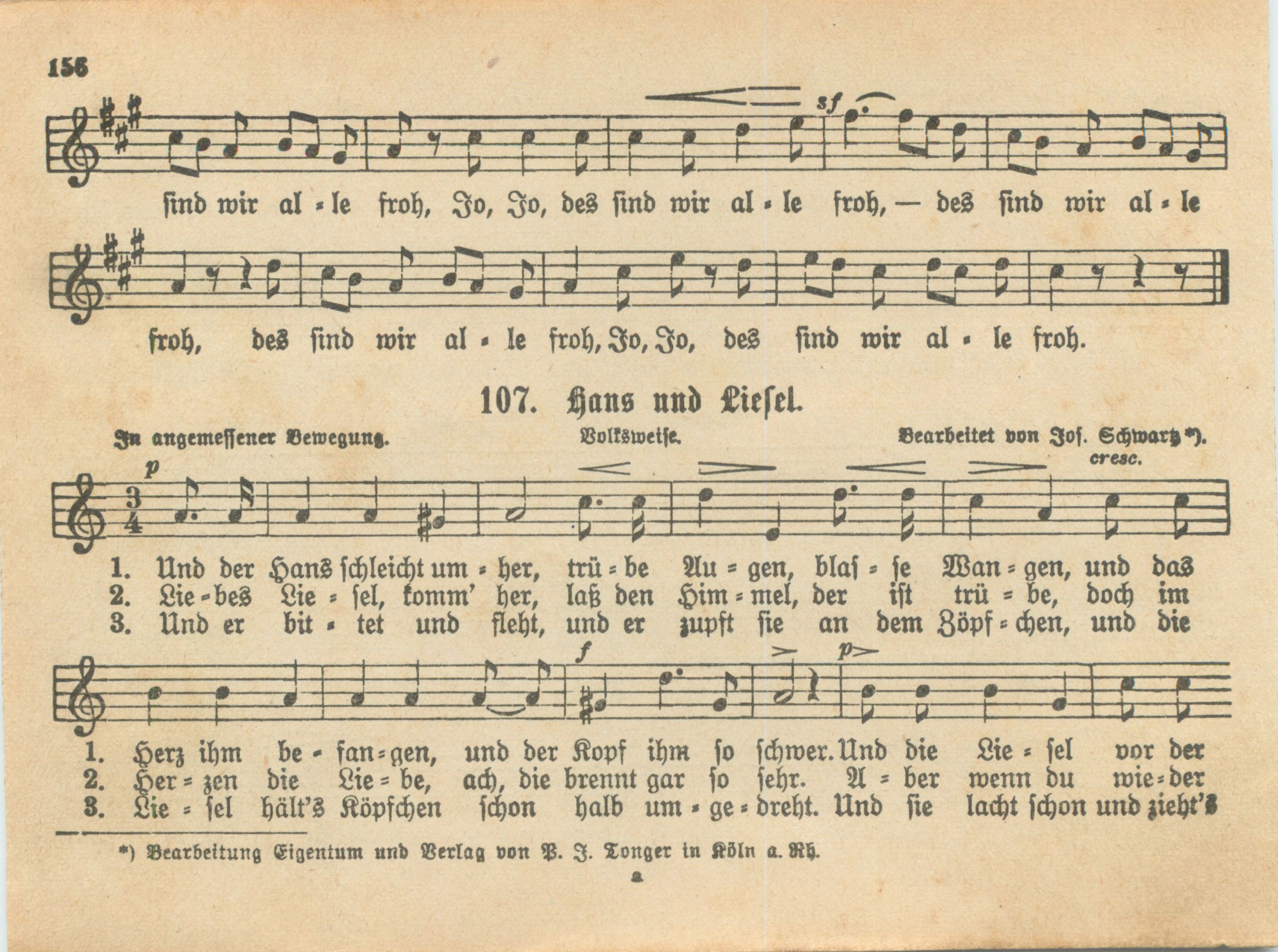 144 der beliebtesten Männerchöre, durchgesehen, teilweise neu bearbeitet und dem Kölner Männergesangsverein gewidmet vom Kgl. Musikdirektor Professor Josef Schwartz