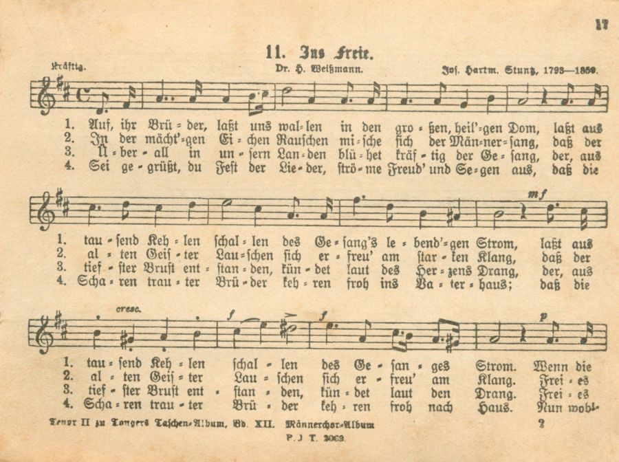 144 der beliebtesten Männerchöre, durchgesehen, teilweise neu bearbeitet und dem Kölner Männergesangsverein gewidmet vom Kgl. Musikdirektor Professor Josef Schwartz