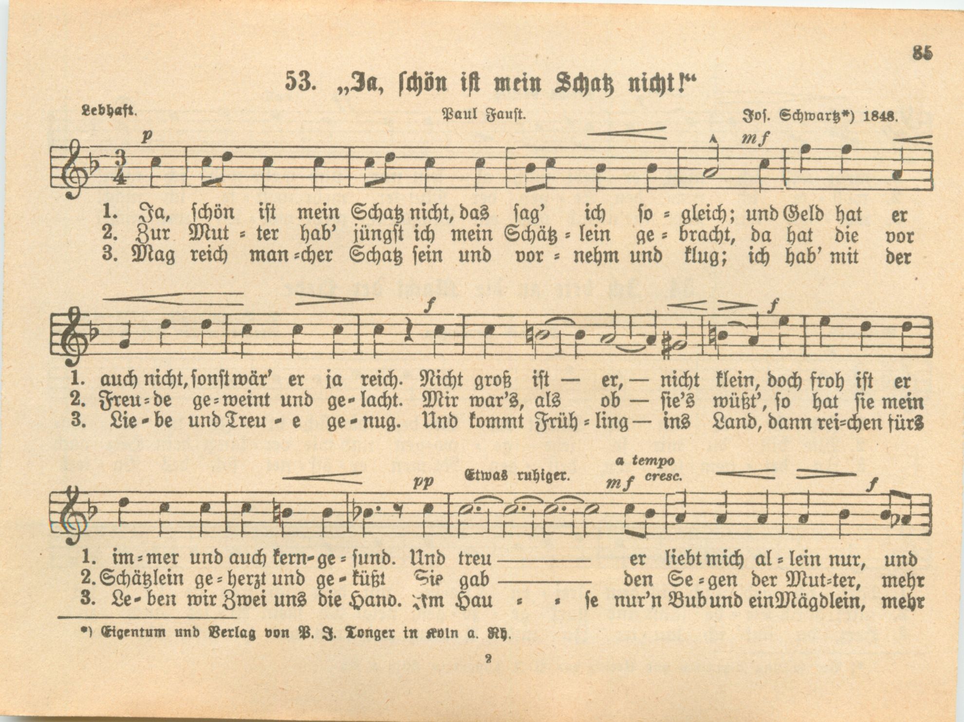 144 der beliebtesten Männerchöre, durchgesehen, teilweise neu bearbeitet und dem Kölner Männergesangsverein gewidmet vom Kgl. Musikdirektor Professor Josef Schwartz