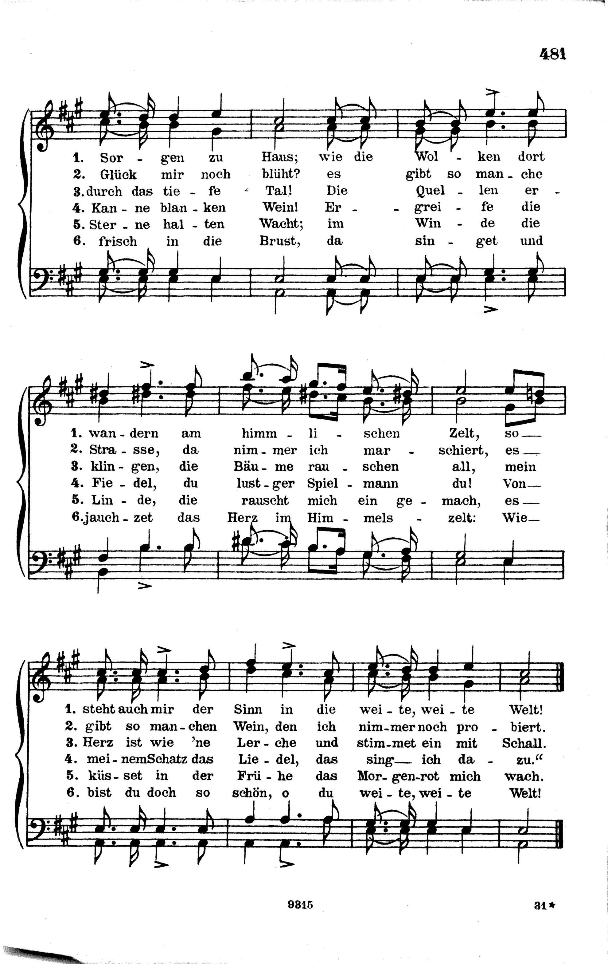 Alphabetisches Verzeichnis der Liedanfänge