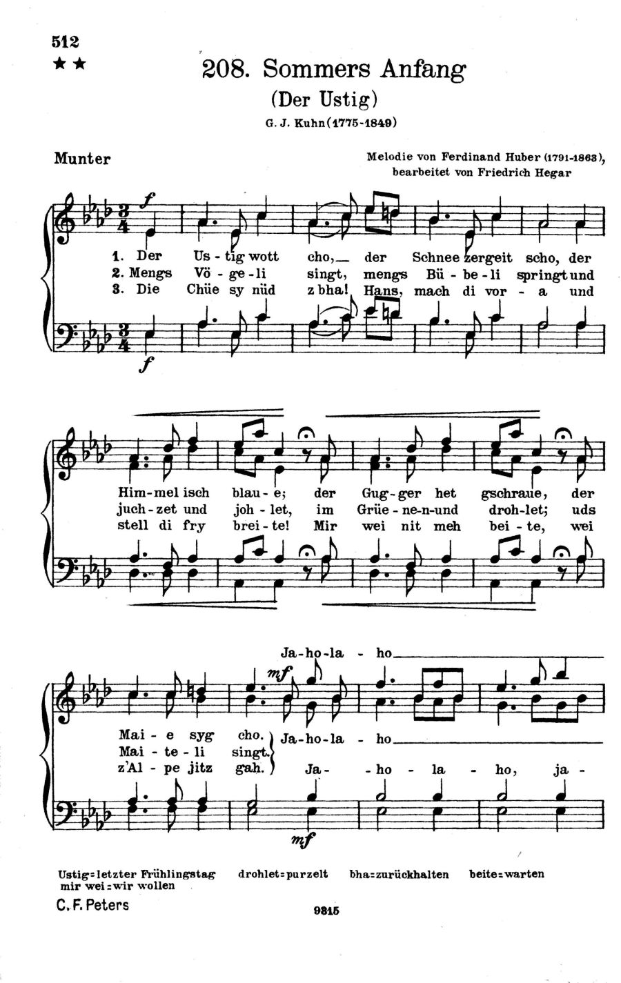 Lieder der Jäger, Schiffer, Bauern, Bergleute