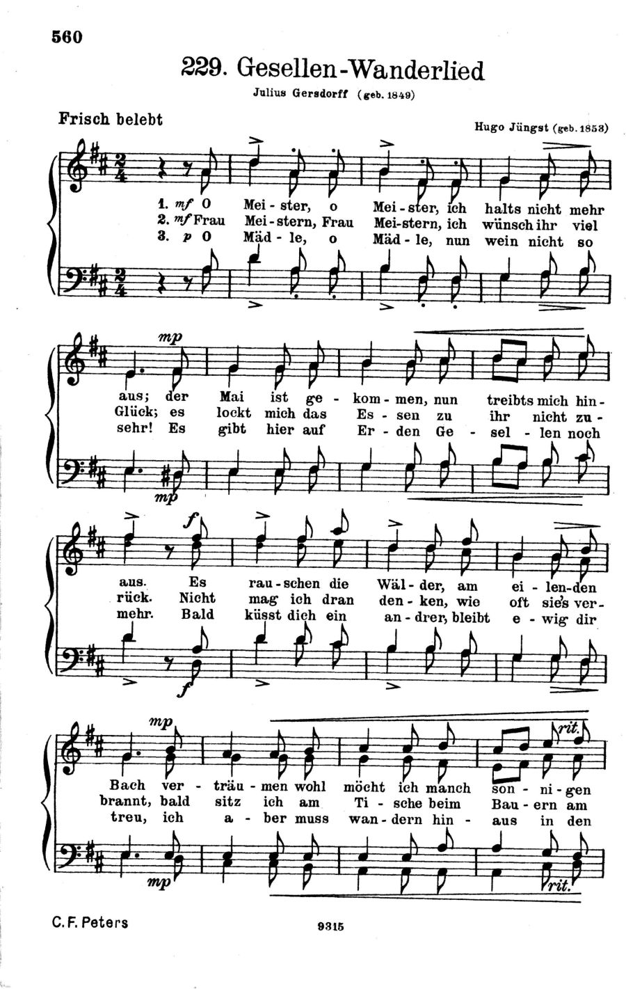 Lieder der Jäger, Schiffer, Bauern, Bergleute